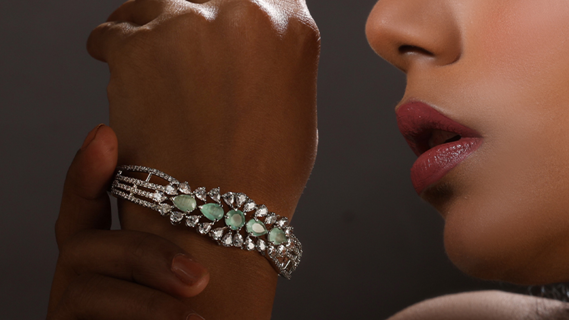 Since your beauty is the attractive power of your perfect personality, soak in the essence of perfection with the dazzling shine of this bracelet. The myriad of American diamonds in various sizes makes this masterpiece versatile and ideal to be paired with your evening gown or contemporary saree.